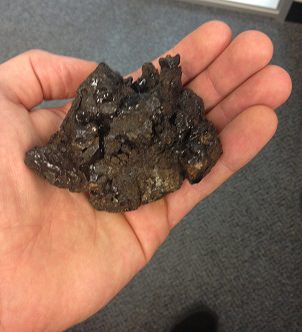 Holding a chunk of raw, unprocessed shilajit in my hand.